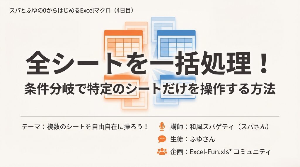 【ExcelVBA】全シートを一括処理!条件分岐で特定のシートだけ操作する方法|スパとふゆの0からはじめるExcelマクロ(4日目)