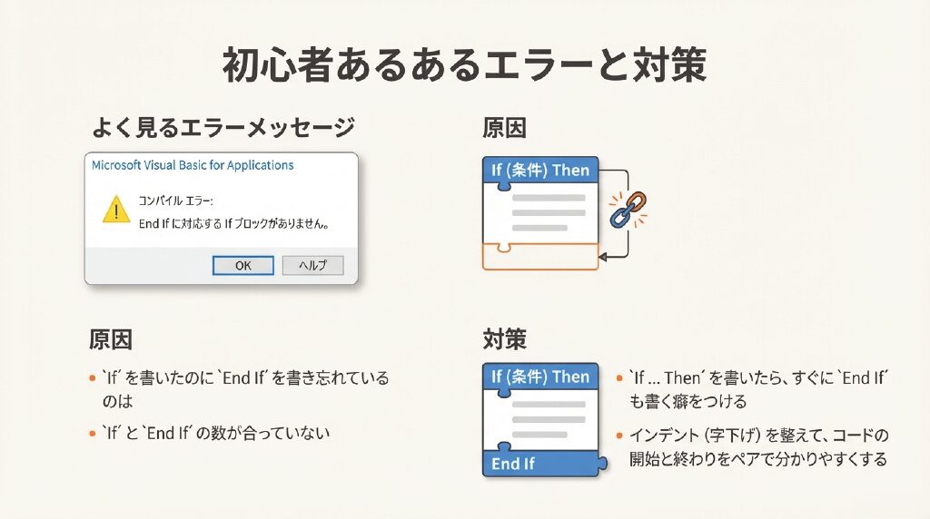 End Sub5. 初心者あるある!「End Ifに対応するIfブロックがありません」エラー