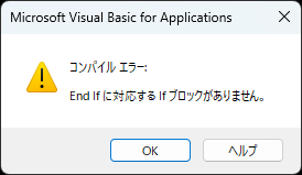 コンパイル エラー: End Ifに対応する If ブロックがありません。